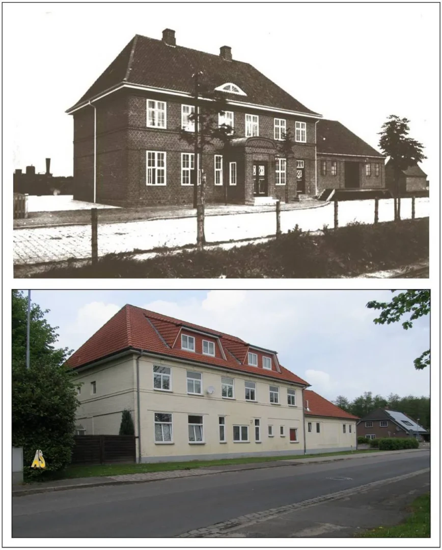 Links Schulstraße 1, früher die Schule, heute Sitz vom Archtekturbüro Bettina Jebens Rechts die heutige Boy-Lornsen-Grundschule