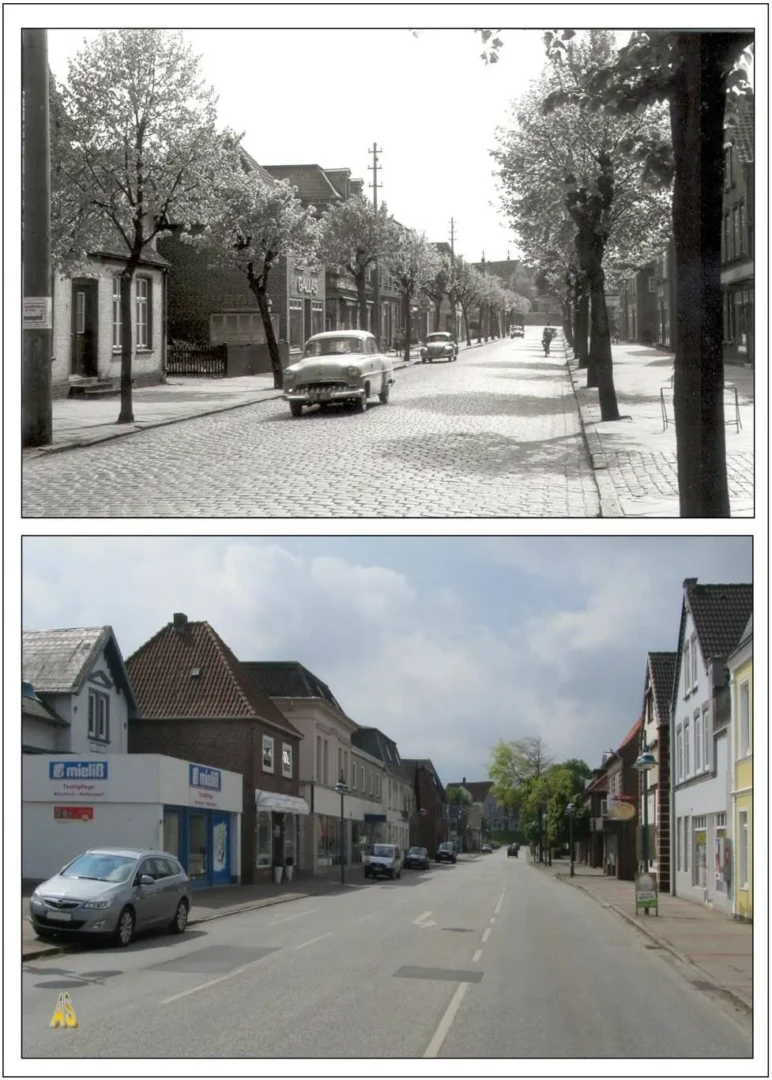 Links gab es mal die Reinigung Witt, und rechte Elektro Ahlf und Teppich Bülow